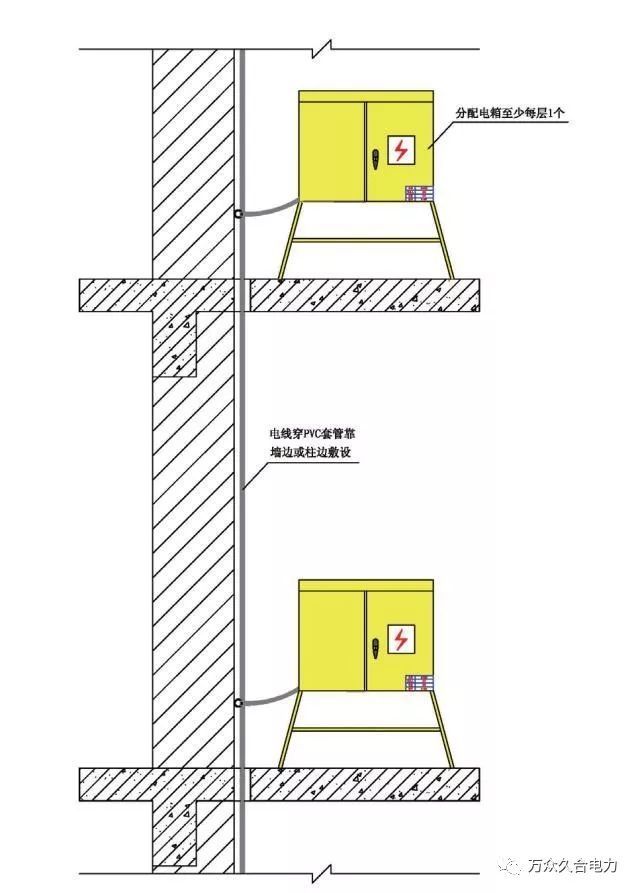 主線不能固定在外部腳手架上。對于垂直安裝的電纜和電線,應使用預埋聚氯乙烯套管進行布線,或直接使用水電安裝完成的管道布線。地板上的電纜和電線應采用瓷瓶架空布置。