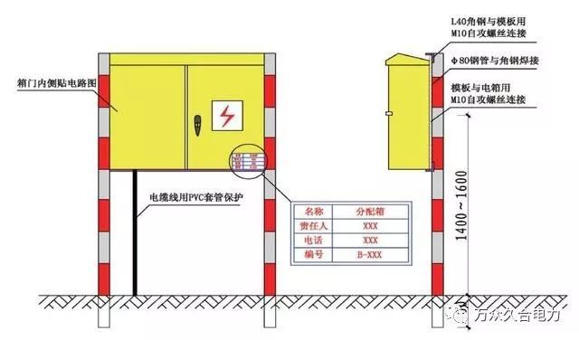 配電柜(箱)應由冷軋鋼板和絕緣材料制成。電路系統(tǒng)圖應附在所有箱門的內部。所有箱門應上鎖。電箱的名稱、負責人、電話號碼和序列號應標在箱門的右下角。閃電標志應附在右邊的中間位置。固定得分配電箱必須有防護措施。