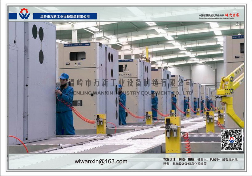 溫嶺萬鑫是一條專業(yè)的開關(guān)柜組裝生產(chǎn)線,采用電動(dòng)滾筒運(yùn)輸,設(shè)有電氣元件組裝區(qū)、二次接線區(qū)、產(chǎn)品檢測區(qū)和無法檢測產(chǎn)品的返工工作臺。我們提供產(chǎn)品設(shè)計(jì)、制造和安裝,以及保修期后的保修和維護(hù)服務(wù)。根據(jù)現(xiàn)場布置和生產(chǎn)要求,提供設(shè)計(jì)方案,選擇高質(zhì)量的部件進(jìn)行制造,為您提供一個(gè)開關(guān)柜流水線的裝配作業(yè)環(huán)境,保證長期高效的作業(yè)。